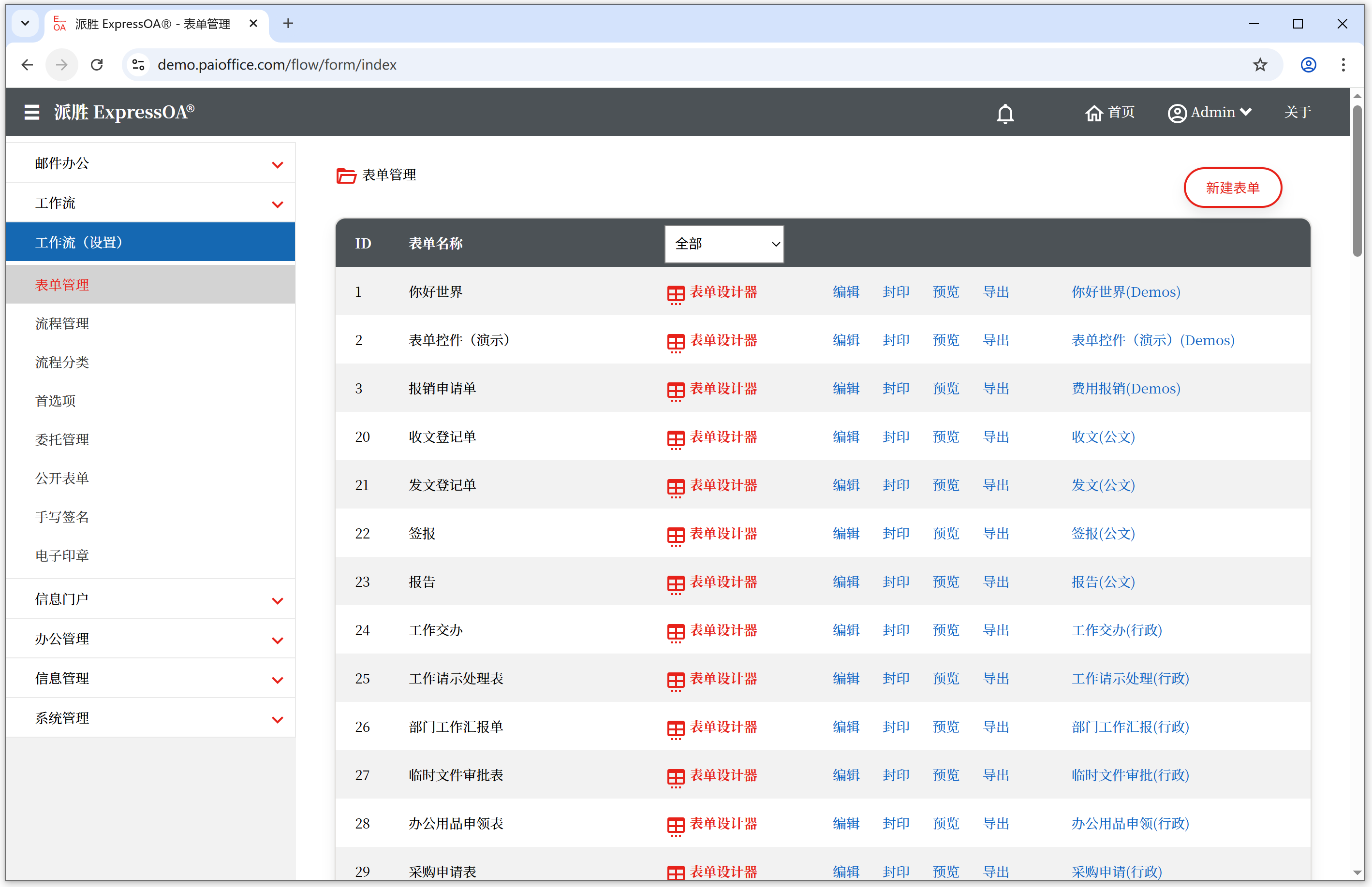派胜OA - ExpressOA® 工作流 - 表单管理